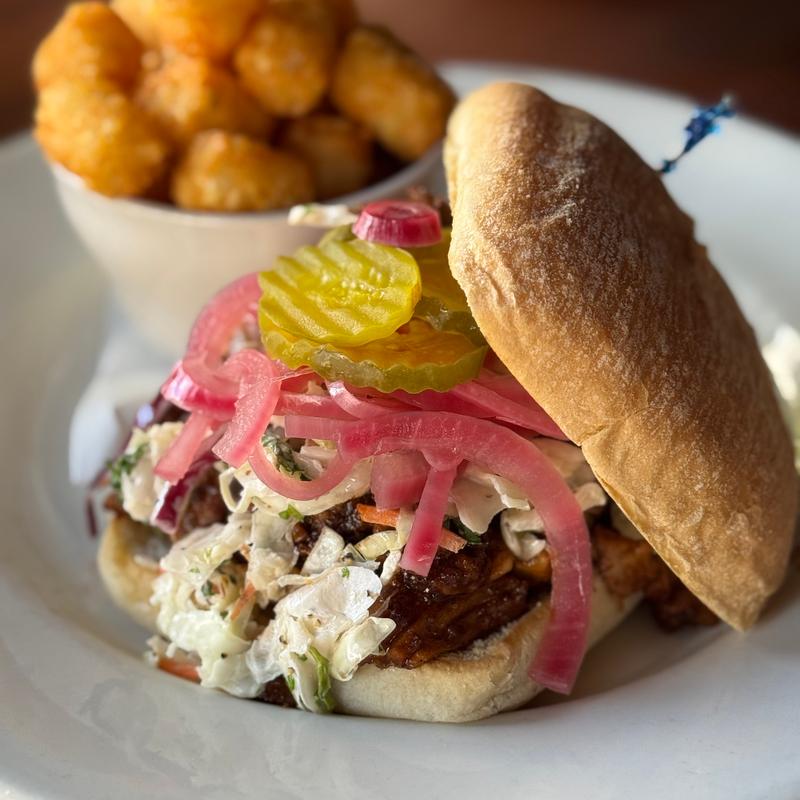 With your choice of fries, tots, or slaw • Upgrade your side: Sweet Potato Fries or Sweet Potato Tots for +$1.50 | House or Caesar Salad for +$4.25 | Onion Rings for +$4.25 | Sub Cup of Soup +$4.25 | Sub Black Bean Patty +$2.25 • Burgers come with lettuce, tomatoes, onions, pickles, aioli, and choice of fries, tots, or slaw.